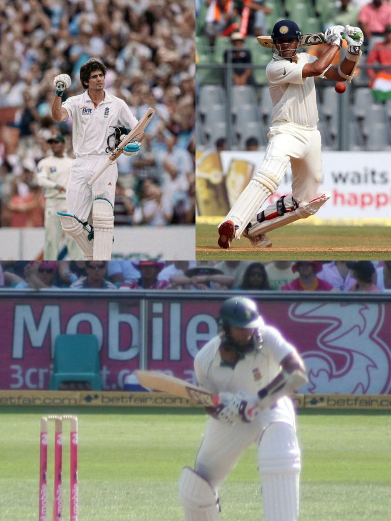 Hashim Amla of South Africa flicks the ball toward the leg side during his record-breaking innings against Australia at the Gabba in November 2012. (Bottom)